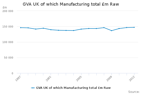 Download this time seriesGVA UK of which Manufacturing total £m Raw