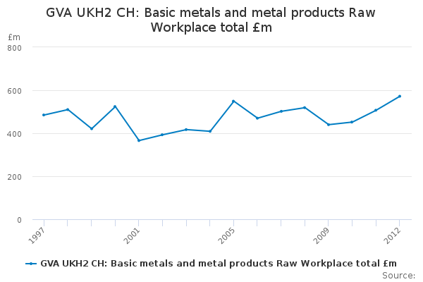 Download this time seriesGVA UKH2 CH: Basic metals and metal products Raw Workplace total £m