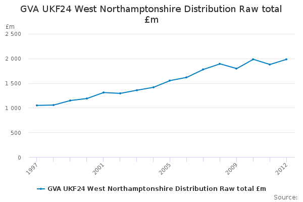 Download this time seriesGVA UKF24 West Northamptonshire Distribution Raw total £m