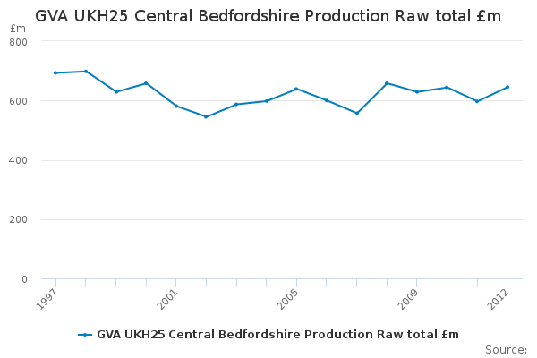 Download this time seriesGVA UKH25 Central Bedfordshire Production Raw total £m