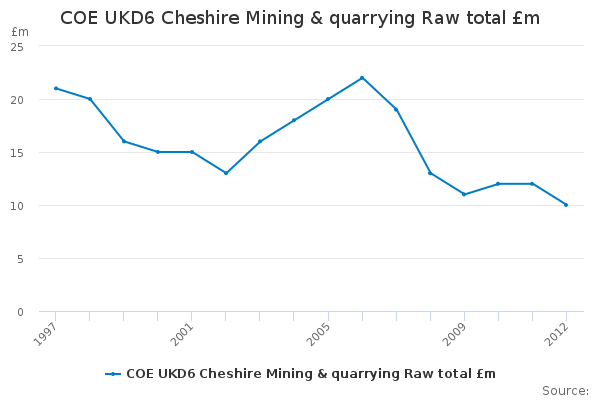 Download this time seriesCOE UKD6 Cheshire Mining & quarrying Raw total £m