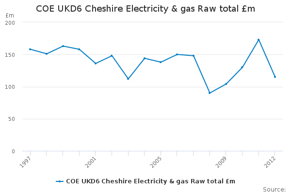Download this time seriesCOE UKD6 Cheshire Electricity & gas Raw total £m