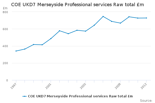 Download this time seriesCOE UKD7 Merseyside Professional services Raw total £m