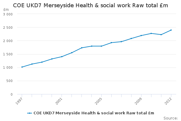 Download this time seriesCOE UKD7 Merseyside Health & social work Raw total £m