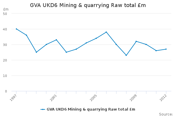 Download this time seriesGVA UKD6 Mining & quarrying Raw total £m