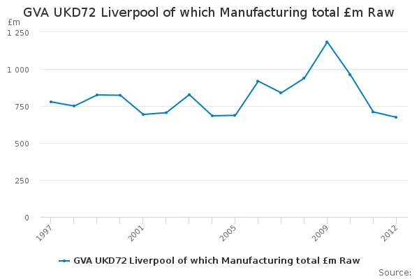 Download this time seriesGVA UKD72 Liverpool of which Manufacturing total £m Raw