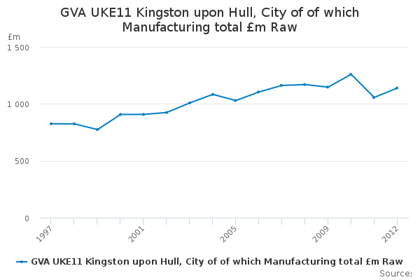 Download this time seriesGVA UKE11 Kingston upon Hull, City of of which Manufacturing total £m Raw