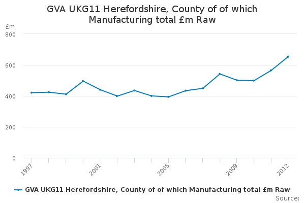 Download this time seriesGVA UKG11 Herefordshire, County of of which Manufacturing total £m Raw