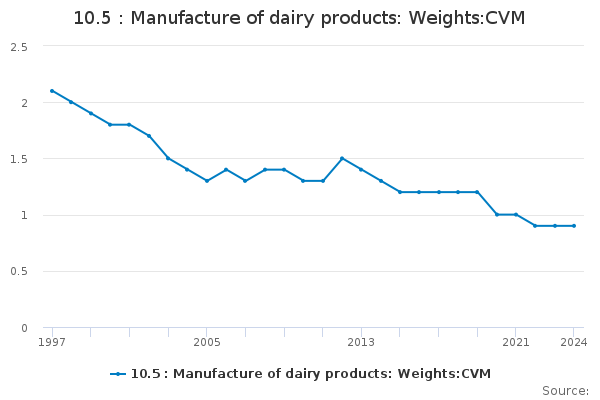 Download this time series10.5 : Manufacture of dairy products: Weights:CVM