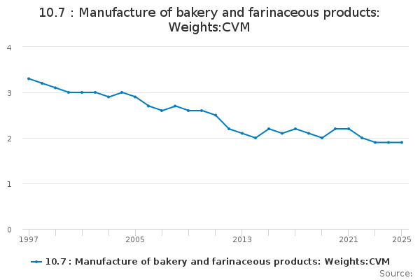 Download this time series10.7 : Manufacture of bakery and farinaceous products: Weights:CVM