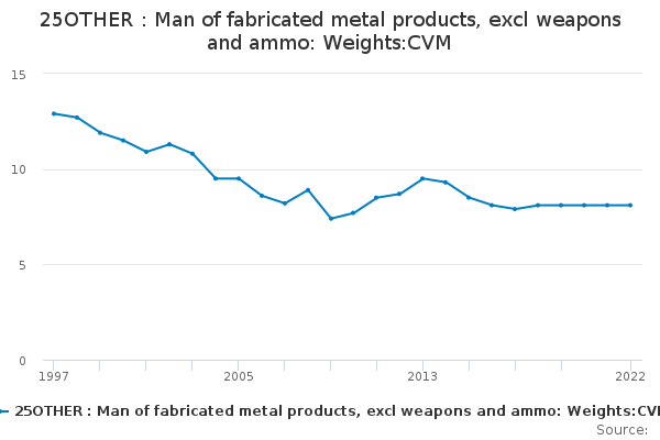 Download this time series25OTHER : Man of fabricated metal products, excl weapons and ammo: Weights:CVM