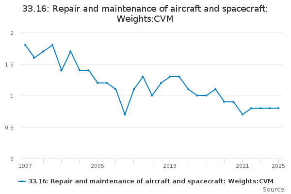Download this time series33.16: Repair and maintenance of aircraft and spacecraft: Weights:CVM