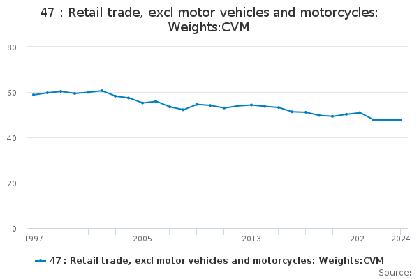 Download this time series47 : Retail trade, excl motor vehicles and motorcycles: Weights:CVM