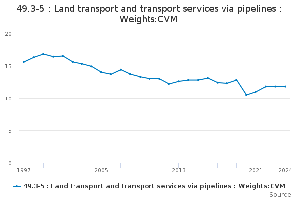 Download this time series49.3-5 : Land transport and transport services via pipelines : Weights:CVM