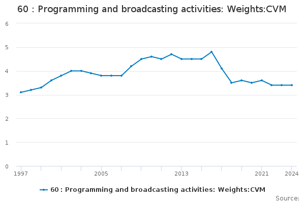 Download this time series60 : Programming and broadcasting activities: Weights:CVM