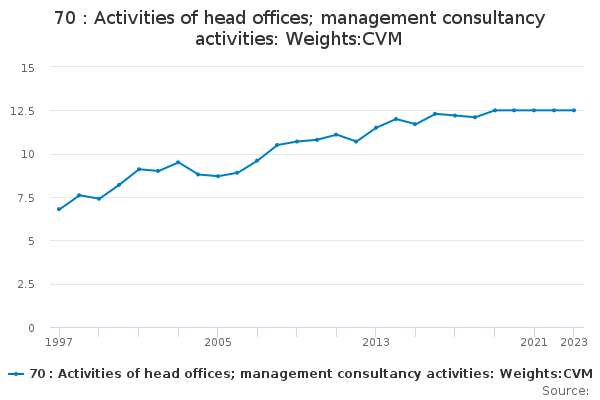 Download this time series70 : Activities of head offices; management consultancy activities: Weights:CVM