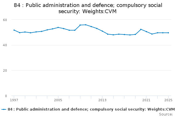 Download this time series84 : Public administration and defence; compulsory social security: Weights:CVM