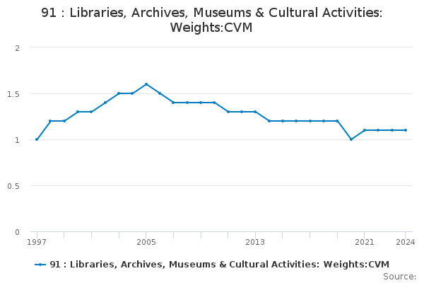 Download this time series91 : Libraries, Archives, Museums & Cultural Activities: Weights:CVM