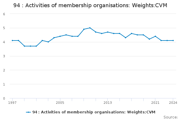 Download this time series94 : Activities of membership organisations: Weights:CVM