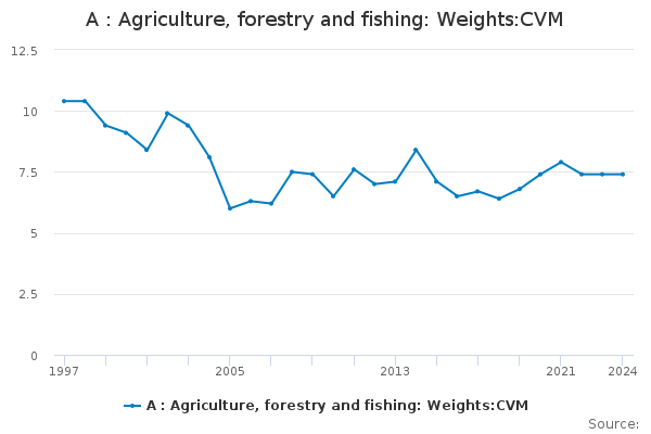Download this time seriesA : Agriculture, forestry and fishing: Weights:CVM