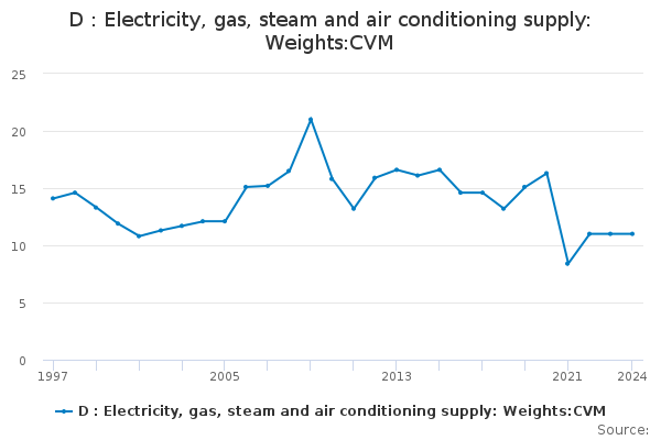 Download this time seriesD : Electricity, gas, steam and air conditioning supply: Weights:CVM