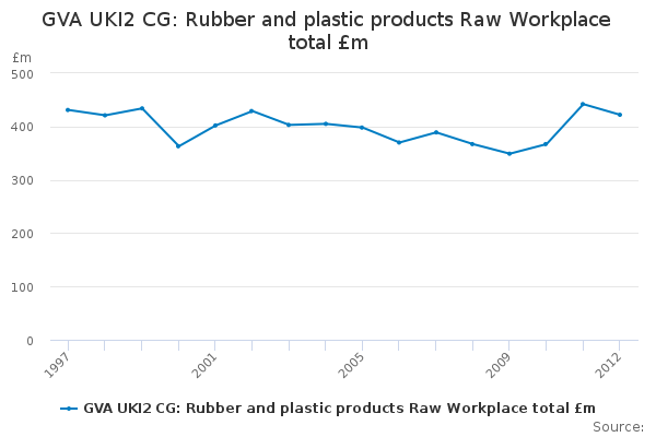 Download this time seriesGVA UKI2 CG: Rubber and plastic products Raw Workplace total £m