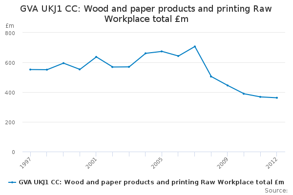 Download this time seriesGVA UKJ1 CC: Wood and paper products and printing Raw Workplace total £m