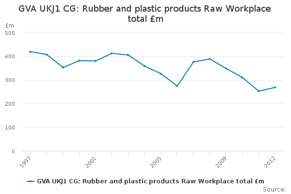 Download this time seriesGVA UKJ1 CG: Rubber and plastic products Raw Workplace total £m