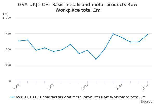 Download this time seriesGVA UKJ1 CH: Basic metals and metal products Raw Workplace total £m