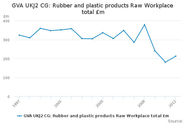 Download this time seriesGVA UKJ2 CG: Rubber and plastic products Raw Workplace total £m