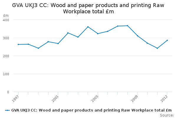 Download this time seriesGVA UKJ3 CC: Wood and paper products and printing Raw Workplace total £m
