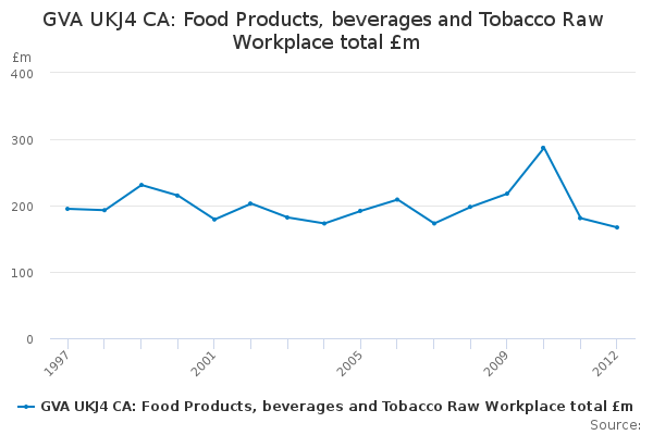 Download this time seriesGVA UKJ4 CA: Food Products, beverages and Tobacco Raw Workplace total £m