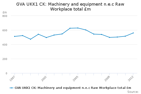 Download this time seriesGVA UKK1 CK: Machinery and equipment n.e.c Raw Workplace total £m