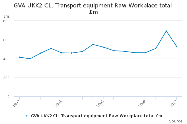 Download this time seriesGVA UKK2 CL: Transport equipment Raw Workplace total £m