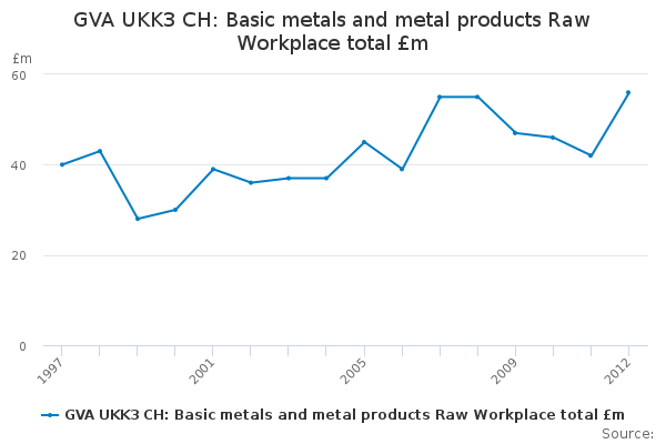 Download this time seriesGVA UKK3 CH: Basic metals and metal products Raw Workplace total £m