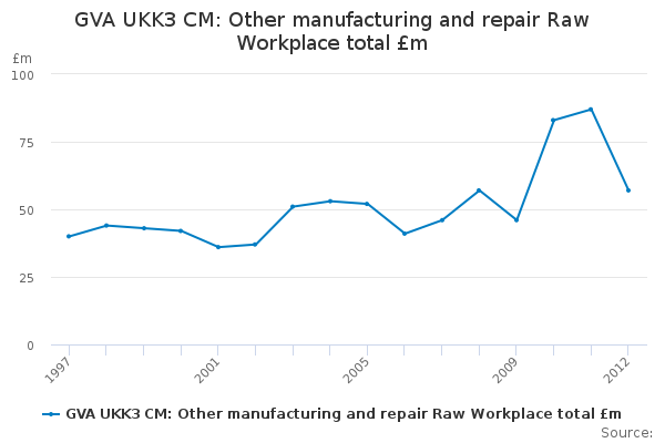 Download this time seriesGVA UKK3 CM: Other manufacturing and repair Raw Workplace total £m