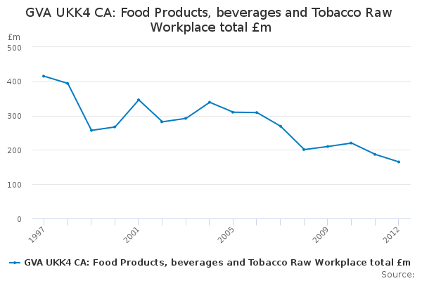 Download this time seriesGVA UKK4 CA: Food Products, beverages and Tobacco Raw Workplace total £m