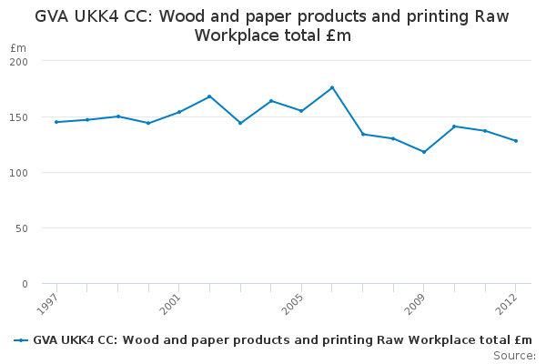 Download this time seriesGVA UKK4 CC: Wood and paper products and printing Raw Workplace total £m