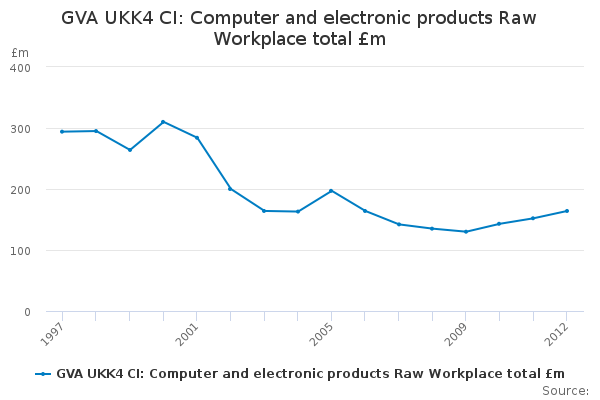 Download this time seriesGVA UKK4 CI: Computer and electronic products Raw Workplace total £m