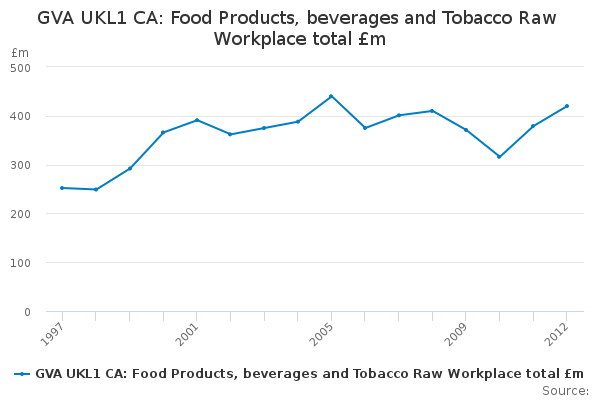 Download this time seriesGVA UKL1 CA: Food Products, beverages and Tobacco Raw Workplace total £m