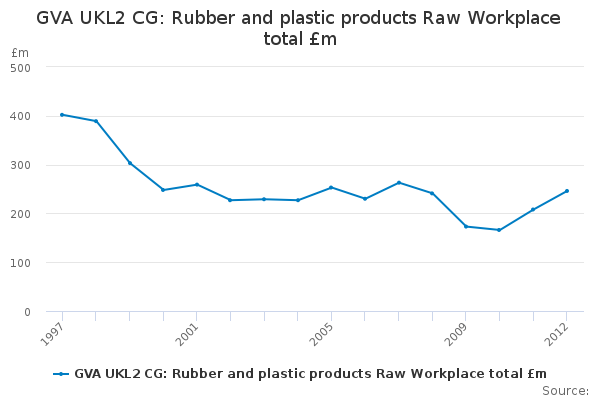 Download this time seriesGVA UKL2 CG: Rubber and plastic products Raw Workplace total £m