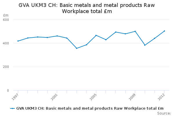Download this time seriesGVA UKM3 CH: Basic metals and metal products Raw Workplace total £m