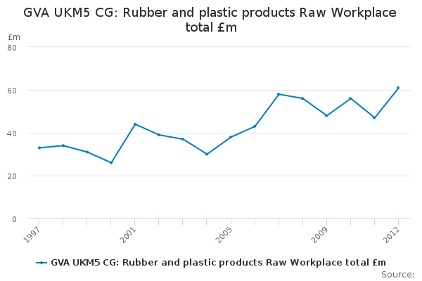 Download this time seriesGVA UKM5 CG: Rubber and plastic products Raw Workplace total £m