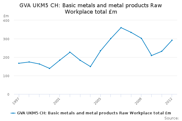 Download this time seriesGVA UKM5 CH: Basic metals and metal products Raw Workplace total £m