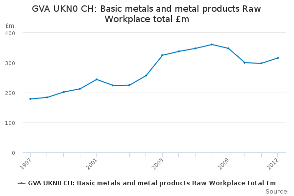 Download this time seriesGVA UKN0 CH: Basic metals and metal products Raw Workplace total £m