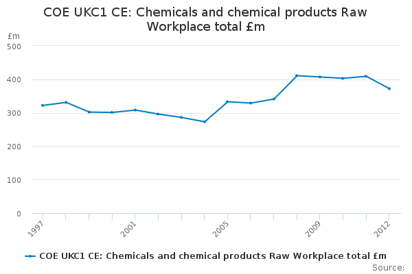 Download this time seriesCOE UKC1 CE: Chemicals and chemical products Raw Workplace total £m