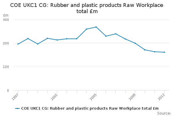 Download this time seriesCOE UKC1 CG: Rubber and plastic products Raw Workplace total £m