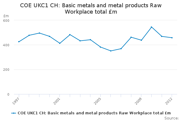 Download this time seriesCOE UKC1 CH: Basic metals and metal products Raw Workplace total £m