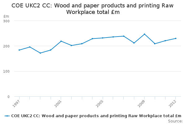 Download this time seriesCOE UKC2 CC: Wood and paper products and printing Raw Workplace total £m