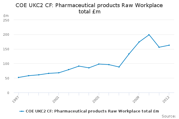 Download this time seriesCOE UKC2 CF: Pharmaceutical products Raw Workplace total £m